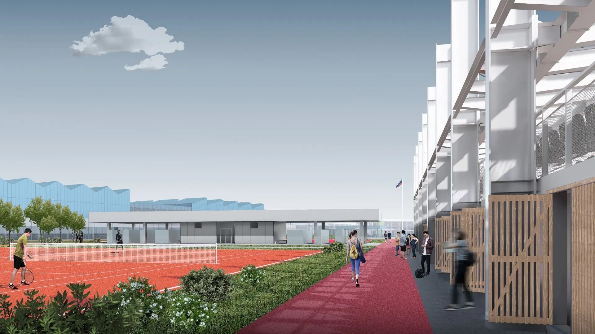 Физкультурно-оздоровительный комплекс будет построен в северо-западной части территории кампуса. Главный вход в здание будет расположен со стороны учебной и жилой зоны, а главной площадкой всего комплекса станет ледовая арена с трибунами на 499 зрителей. Габариты ледовой арены 36х65 метров с ледовым полем 26х60 метров рассчитаны на занятия хоккеем и фигурным катанием.