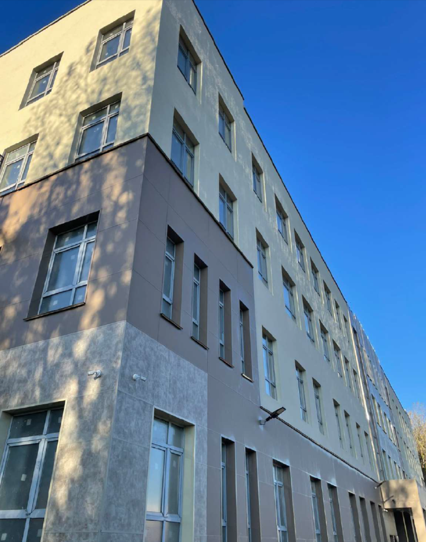 Пятиэтажное здание поликлиники общей площадью 8358,2 кв. метров включает в себя два изолированных друг от друга структурных подразделения: взрослое – на 315 посещений в смену и детское – на 105 посещений в смену.